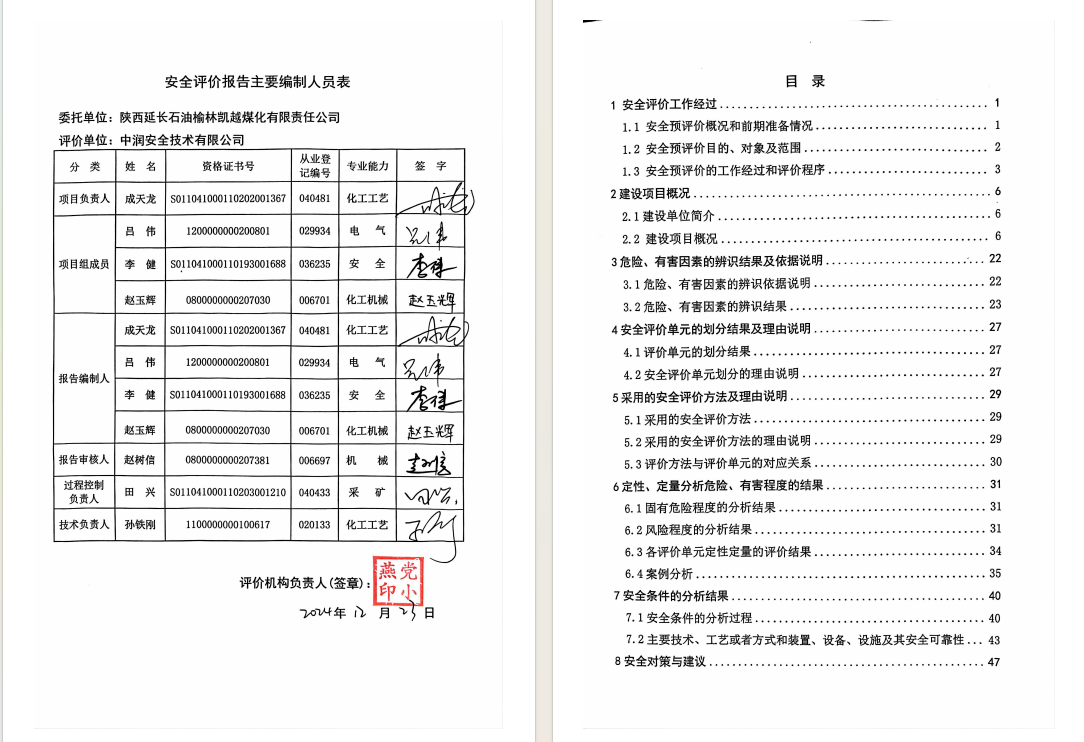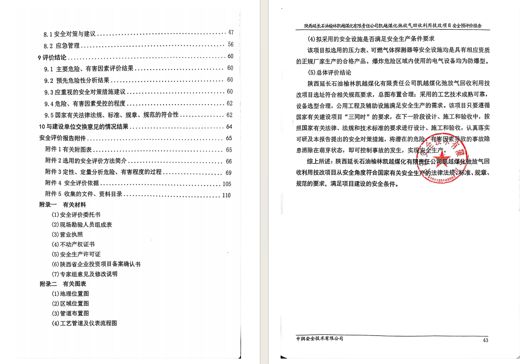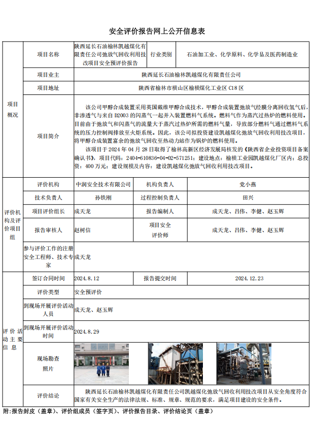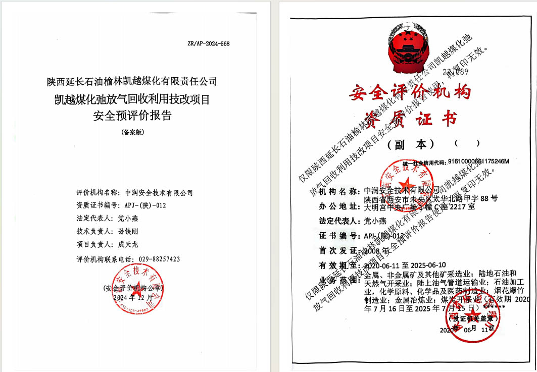 陜西延長石油榆林凱越煤化有限責(zé)任公司弛放氣回收利用技改項目安全預(yù)評價報告