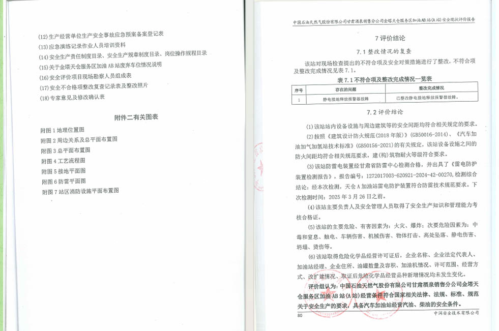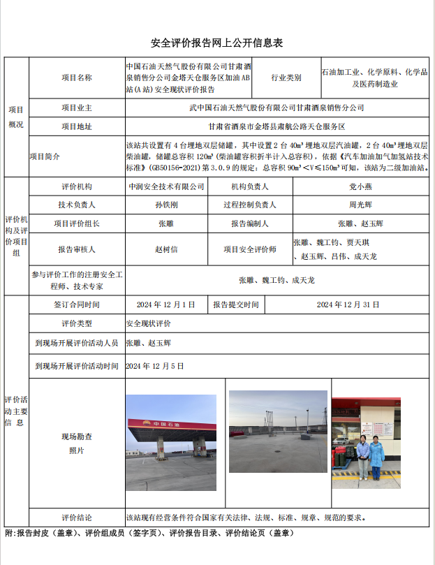 中國(guó)石油天然氣股份有限公司甘肅酒泉銷售分公司金塔天倉(cāng)服務(wù)區(qū)加油AB站(A站)安全現(xiàn)狀評(píng)價(jià)報(bào)告